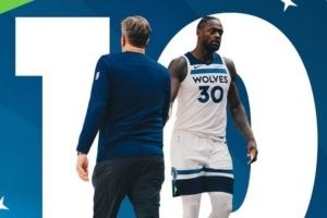 这是森林狼赛季第15场比赛,前15战他们取得10场胜利,森林狼官方数据统计,这是在过去20年第三次出现前15场10胜,其中两次是在芬奇教练麾下。
